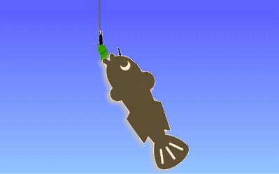 3.ハゼの目の前にエサを垂らします