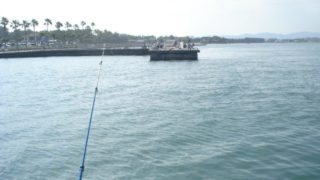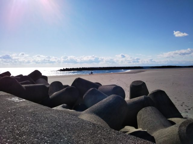 導流堤の脇にはテトラポットがあり、夫はそこで穴釣りに挑戦。