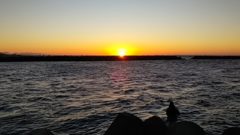 夫はテトラで穴釣りを、私は砂浜でルアーの練習をしました。